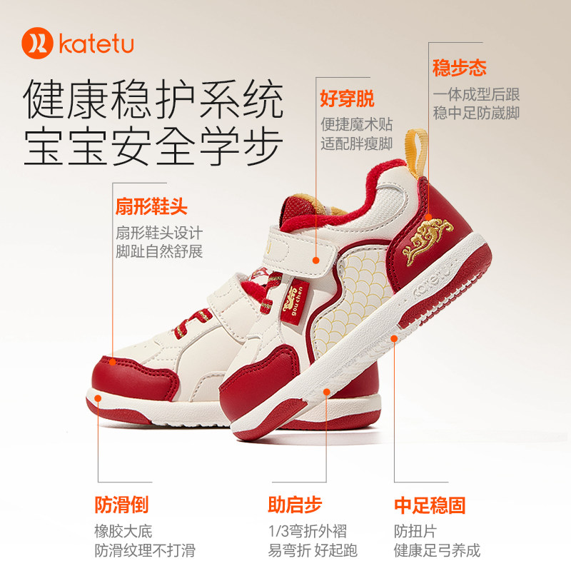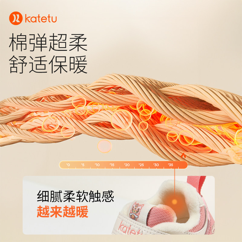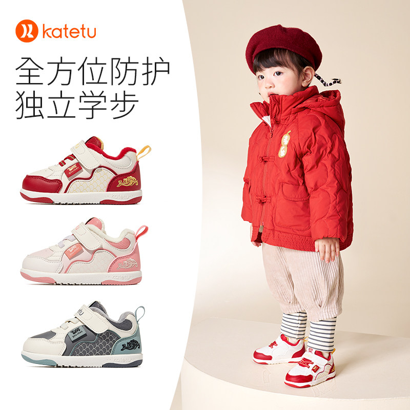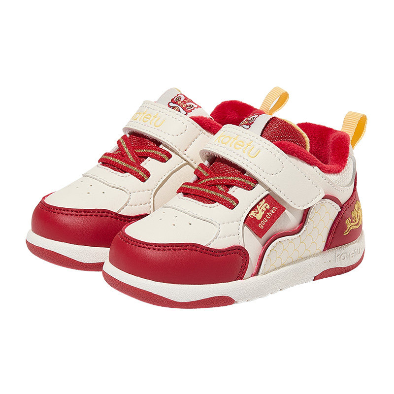 卡特兔学步鞋宝宝新款鞋子加绒保暖板鞋儿童棉鞋新年男童女童