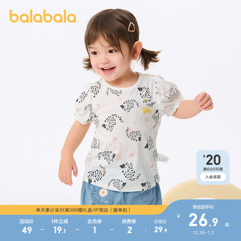 巴拉巴拉童装宝宝男童短袖t恤女童上衣2025夏装时尚休闲百搭上衣