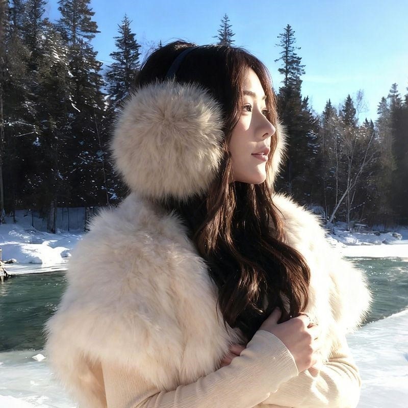 毛绒耳罩女保暖耳包雪地旅游拍照2025新款秋冬加绒防寒护耳朵耳套