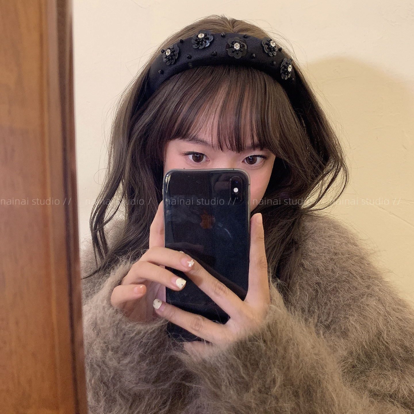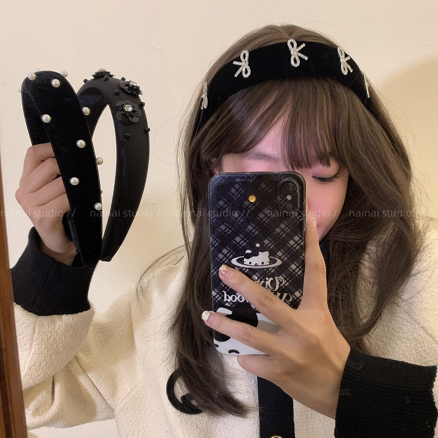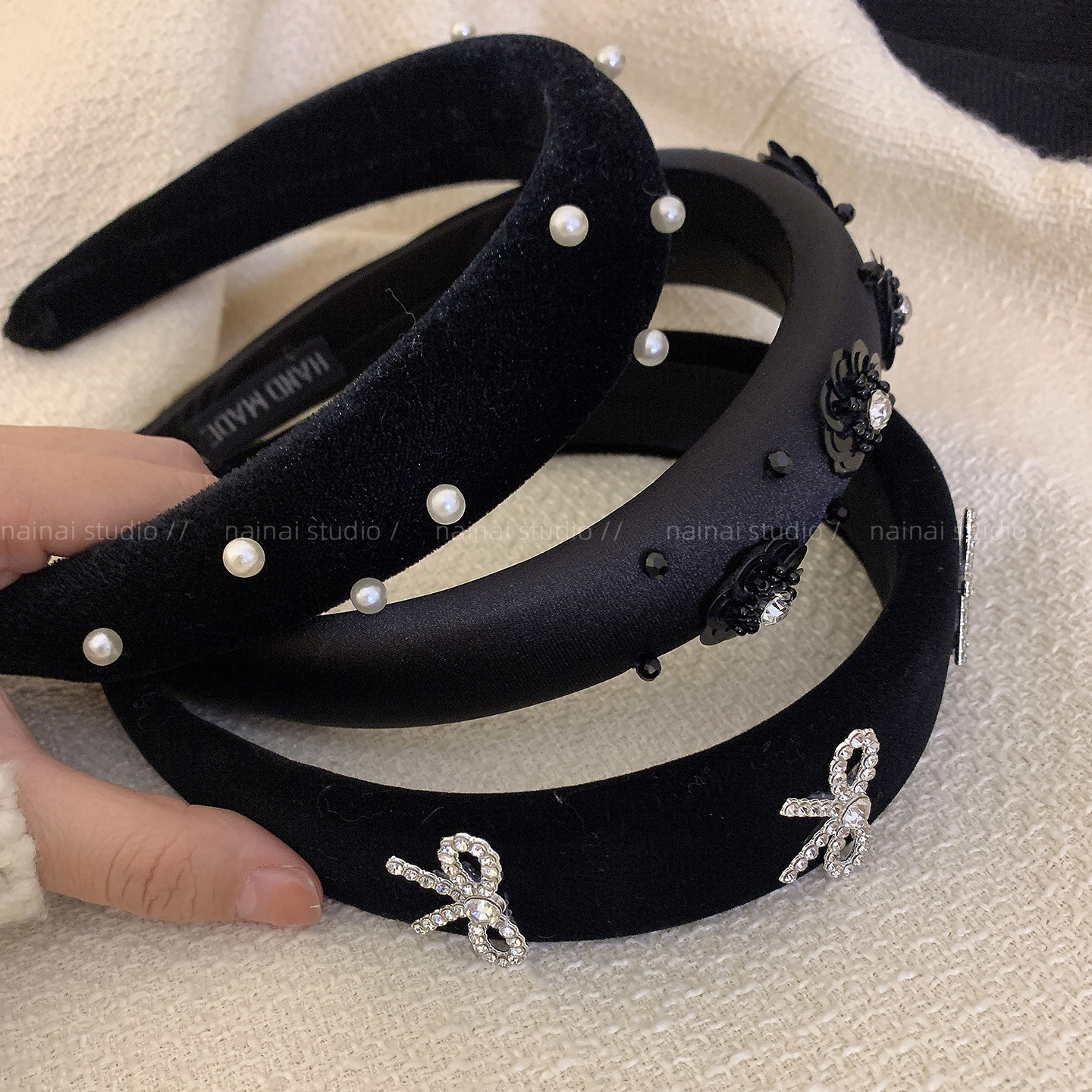 贵气丝绒发箍~复古法式黑色高级感水钻蝴蝶结千金感高颅顶头箍女