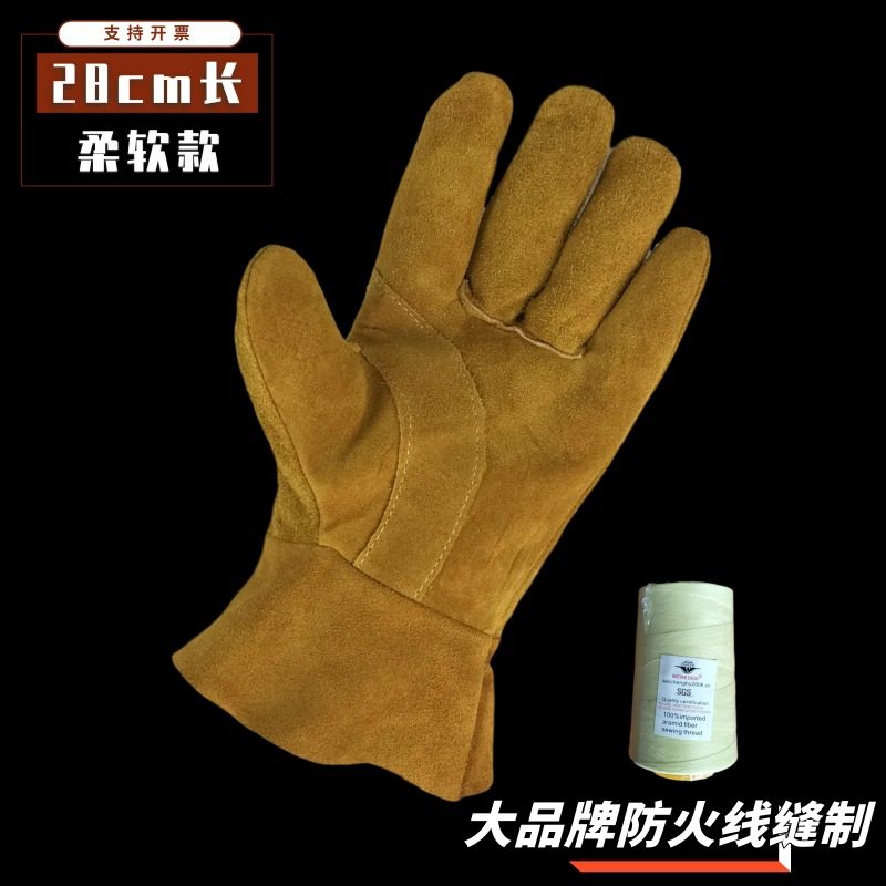短款电焊手套牛皮劳保手套司机全皮阻燃隔热防烫焊工防火线柔软