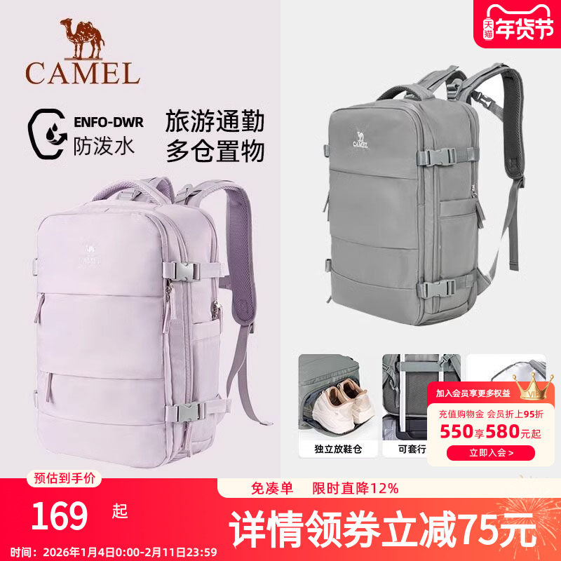 骆驼双肩包通勤学生书包大容量旅行轻便休闲旅游运动背包登山包