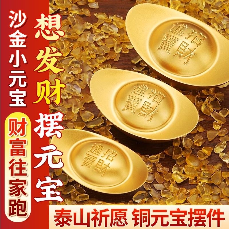 黄铜实心沙金元宝摆件道具财神客厅聚宝盆店铺装饰品开业乔迁礼品