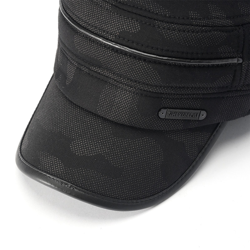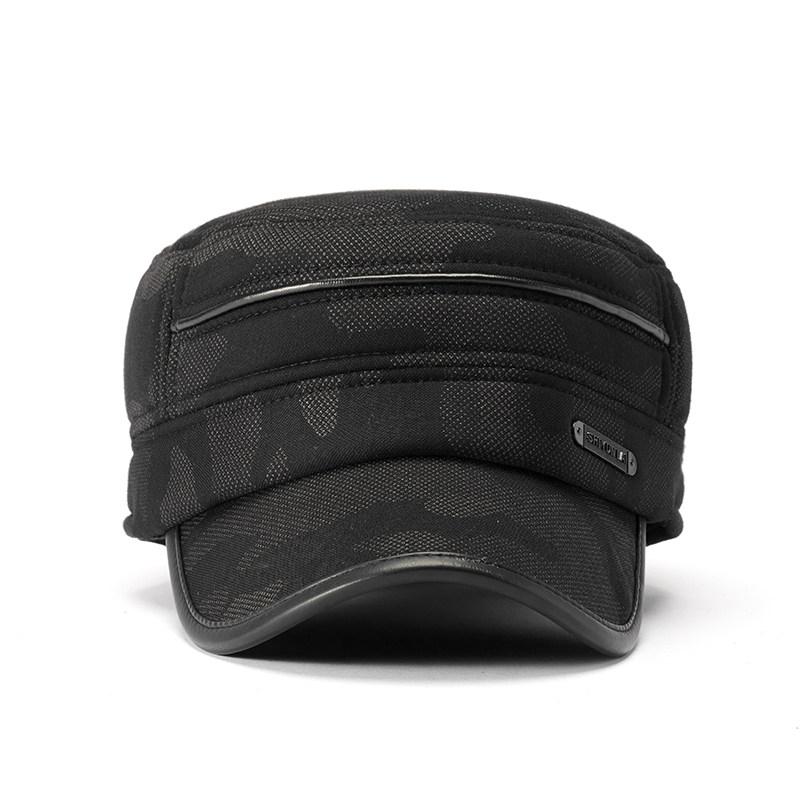 迷彩平顶鸭舌帽子男士中老年爸爸爷爷冬季保加厚护耳休闲鸭舌帽子