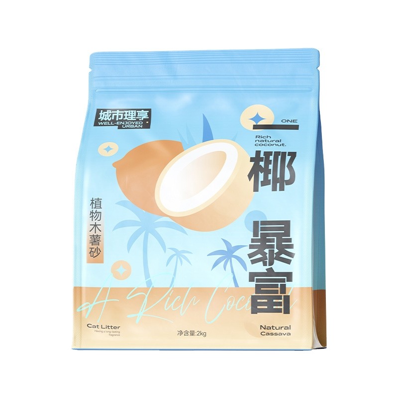 城市理享植物纯木薯猫砂除臭近无尘2kg*1包