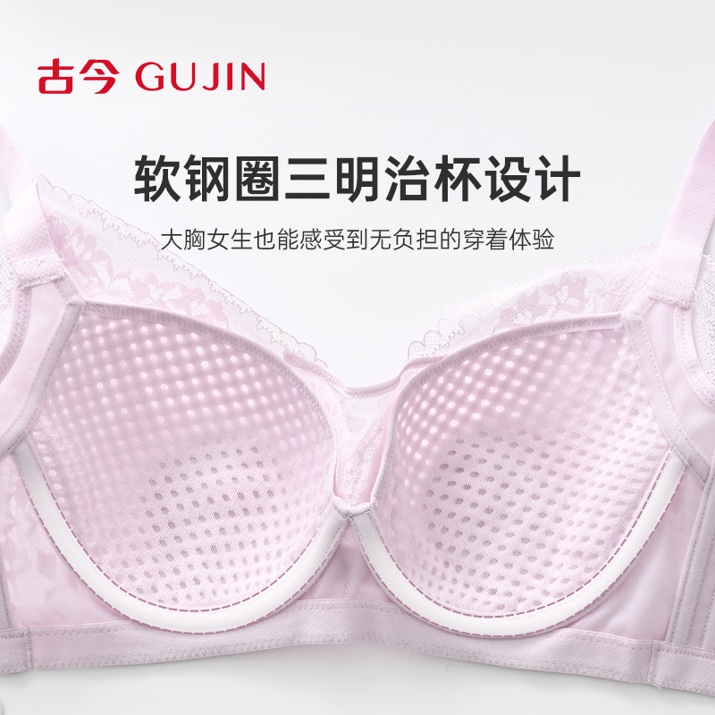 古今内衣女透气大胸显小收副乳软钢圈三明治杯舒适抹胸文胸
