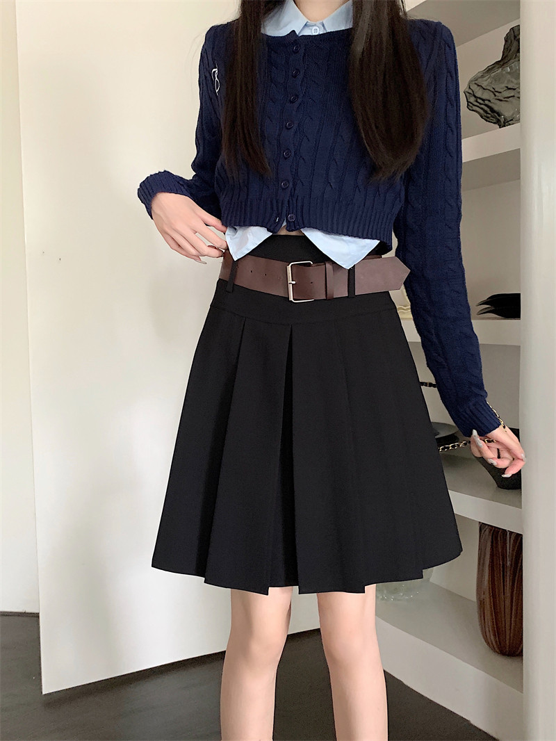百褶裙女小个子夏季新款高腰显瘦半身裙纯色大码学院风jk短裙套装