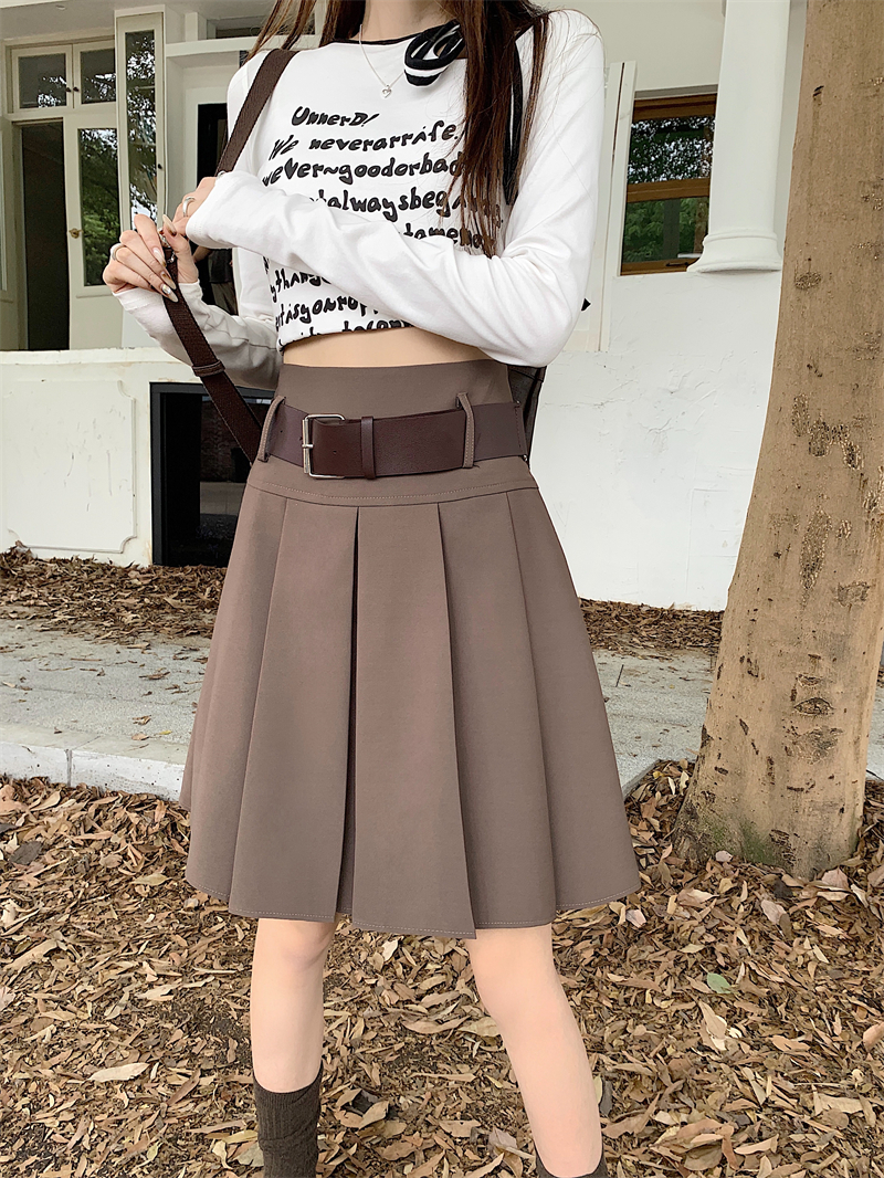 她池松紧腰百褶裙2025秋装新款女装时尚简约中长款A字高腰半身裙