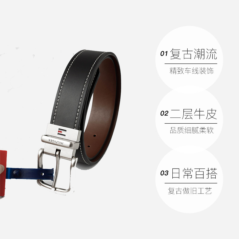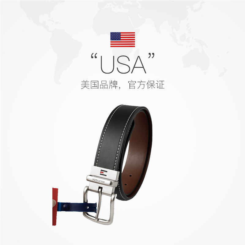 【自营】TOMMY HILFIGER汤米软面真皮皮带百搭型针扣男士腰带礼盒