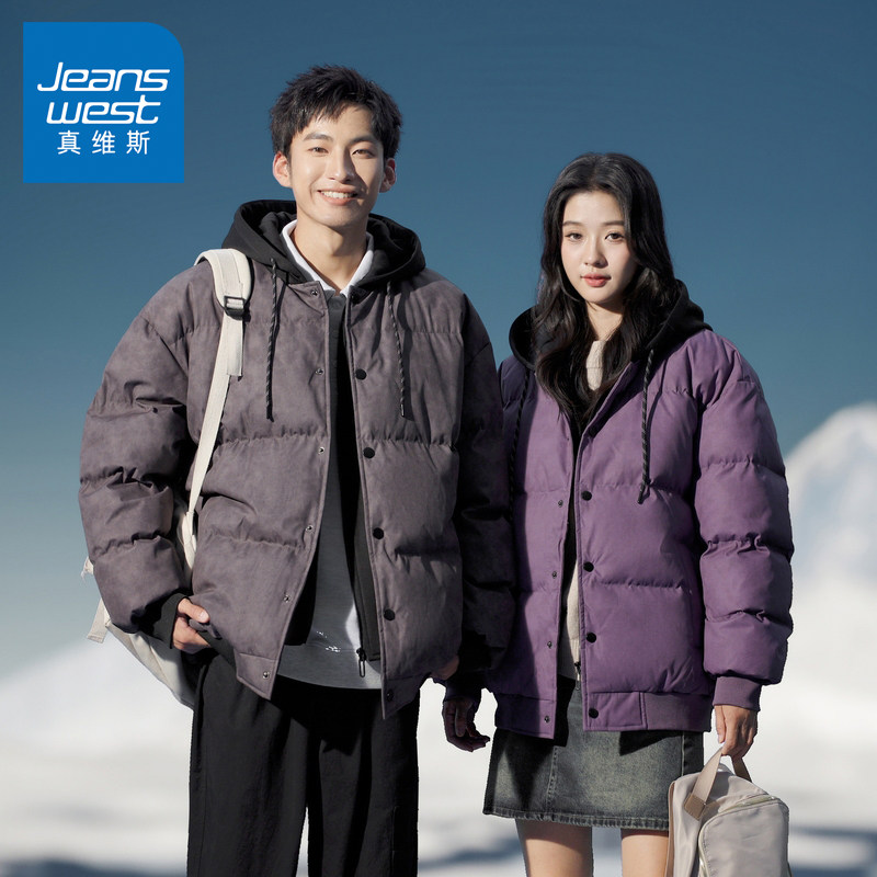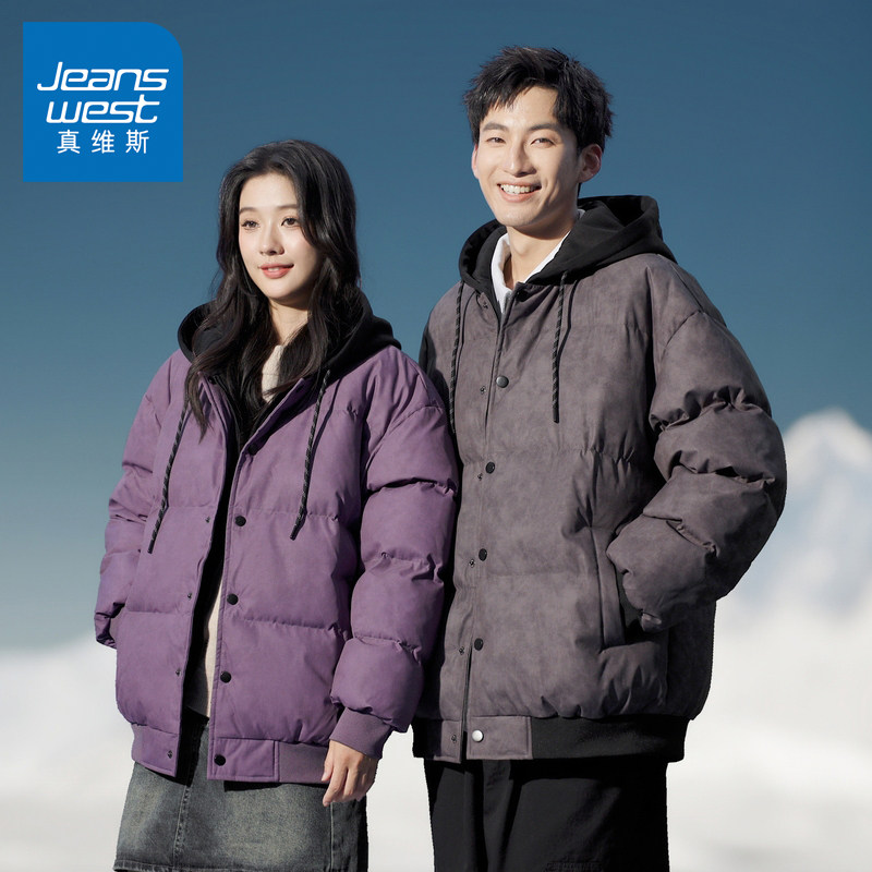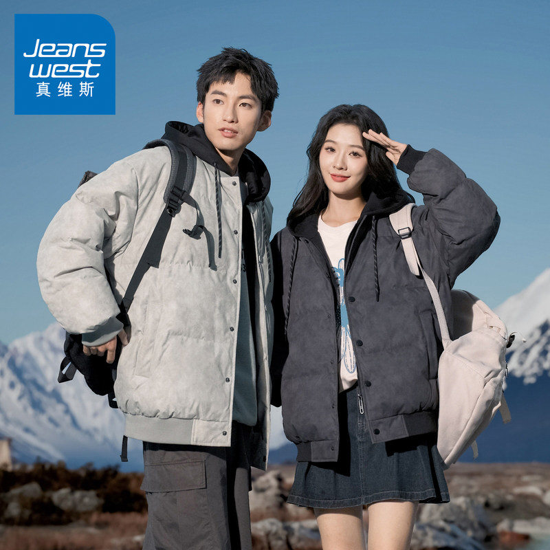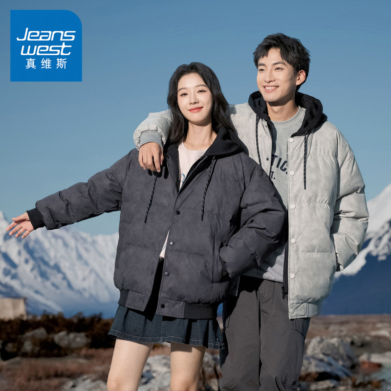 N5真维斯棉服男款2025新款冬季加厚保暖情侣装假两件棉衣冬装外套