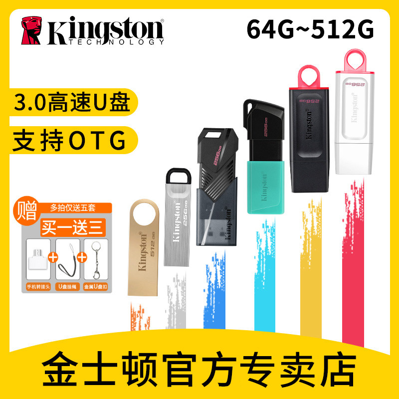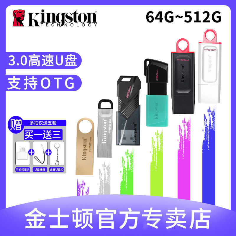 金士顿u盘512汽车256载大128容量64G手机电脑typec官方店正品优盘