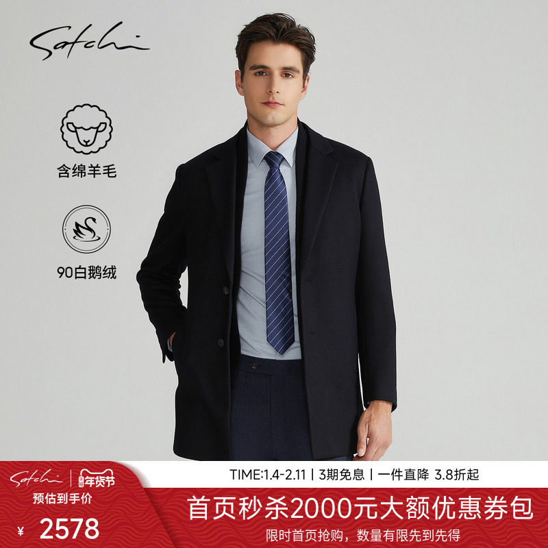 [可拆卸鹅绒内胆]SATCHI沙驰男装男士毛呢大衣冬季中长款羊毛外套