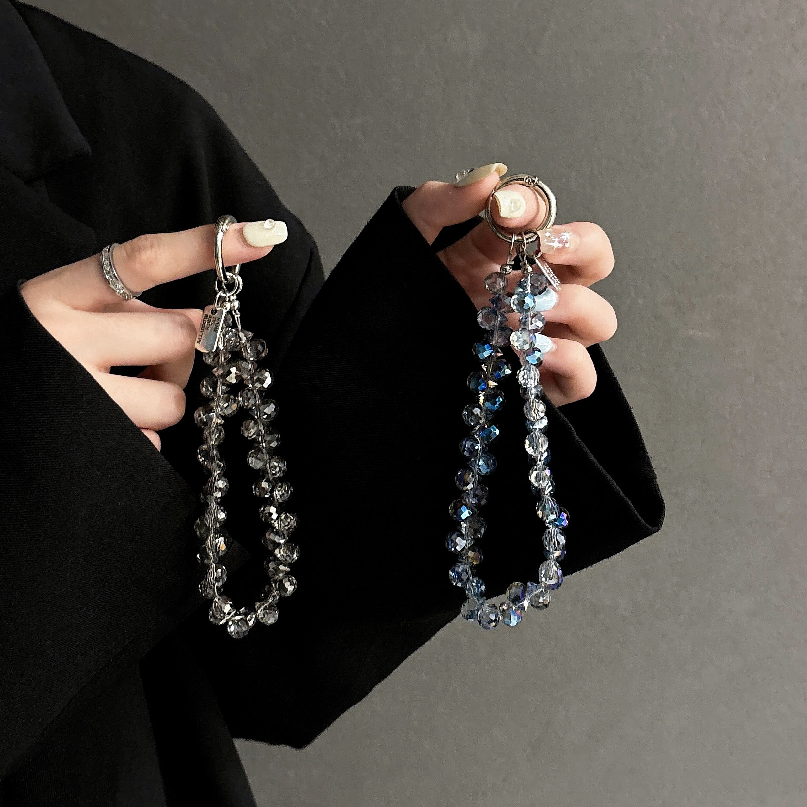 奢华高级感水晶手提链条手腕短挂绳带夹片壳钥匙扣包包挂件潮