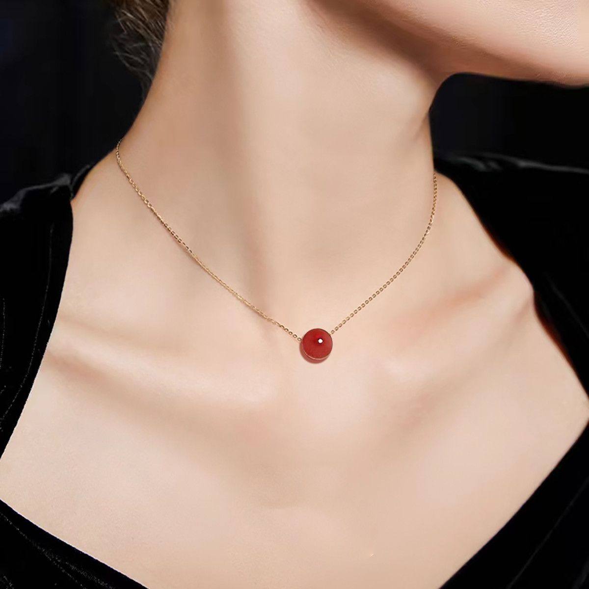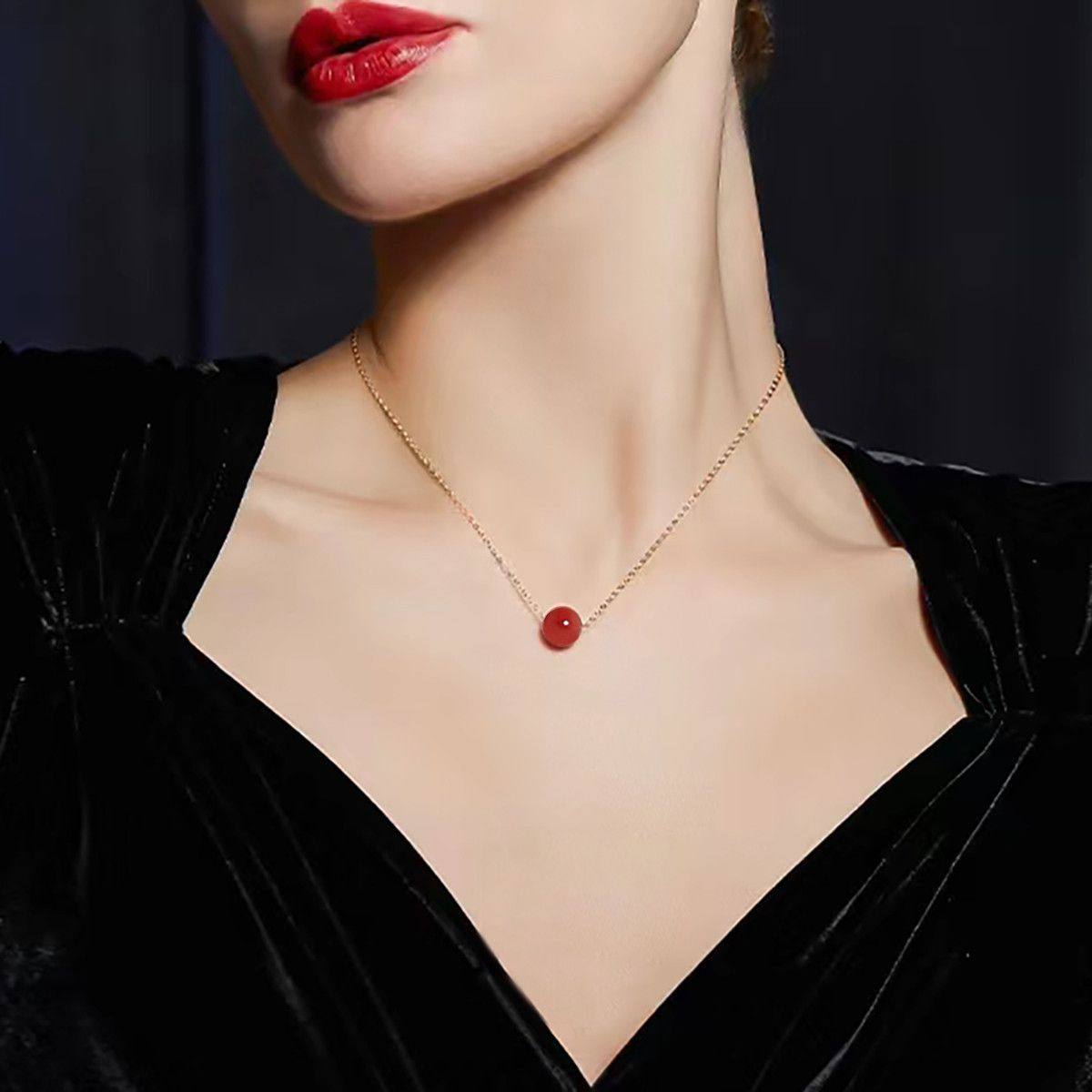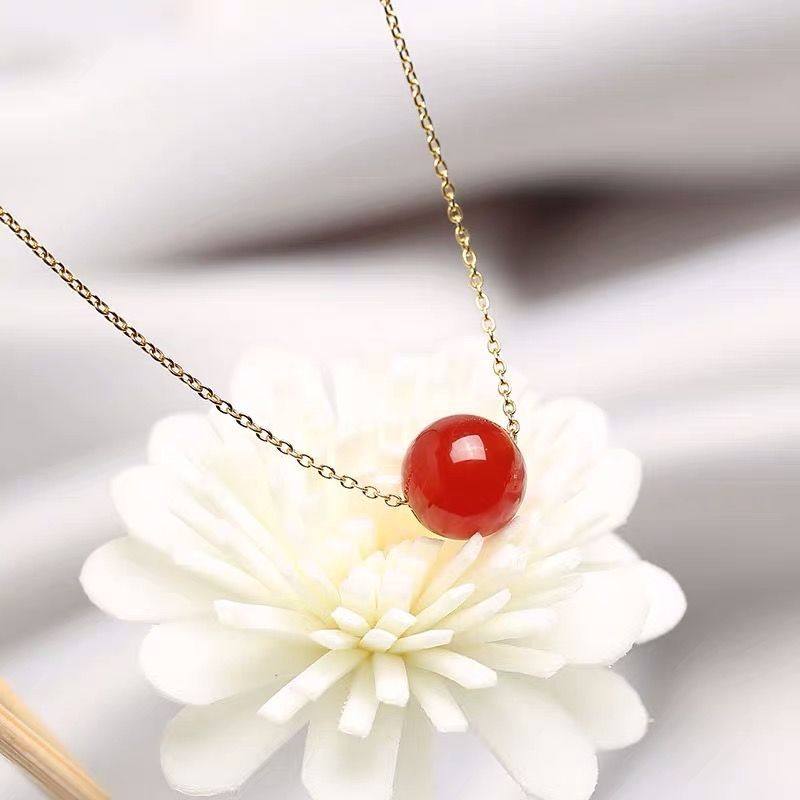 红玛瑙路路通单颗转运珠吊坠项链女士本命年相思豆玉髓新年锁骨链