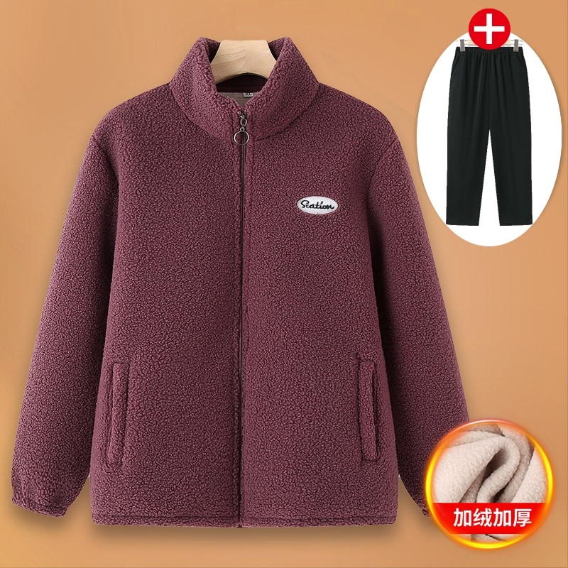 中老年人摇粒绒外套秋冬款女奶奶加绒加厚棉衣老人妈妈羊羔绒上衣