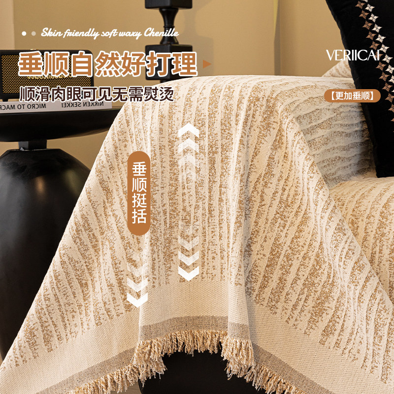 2025新款四季通用雪尼尔沙发盖布巾防猫抓全盖秋冬季套罩防滑奶油