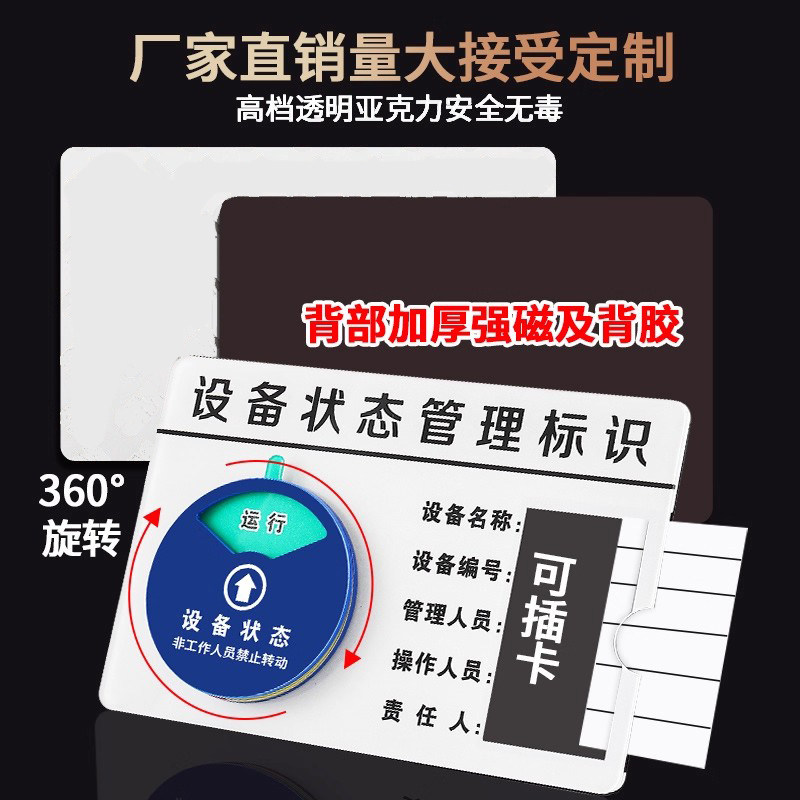 设备状态标识牌亚克力标示牌机器运行管理卡注塑机状态标识牌机台机器磁吸式带磁铁器械铭牌仪器状态牌定制做