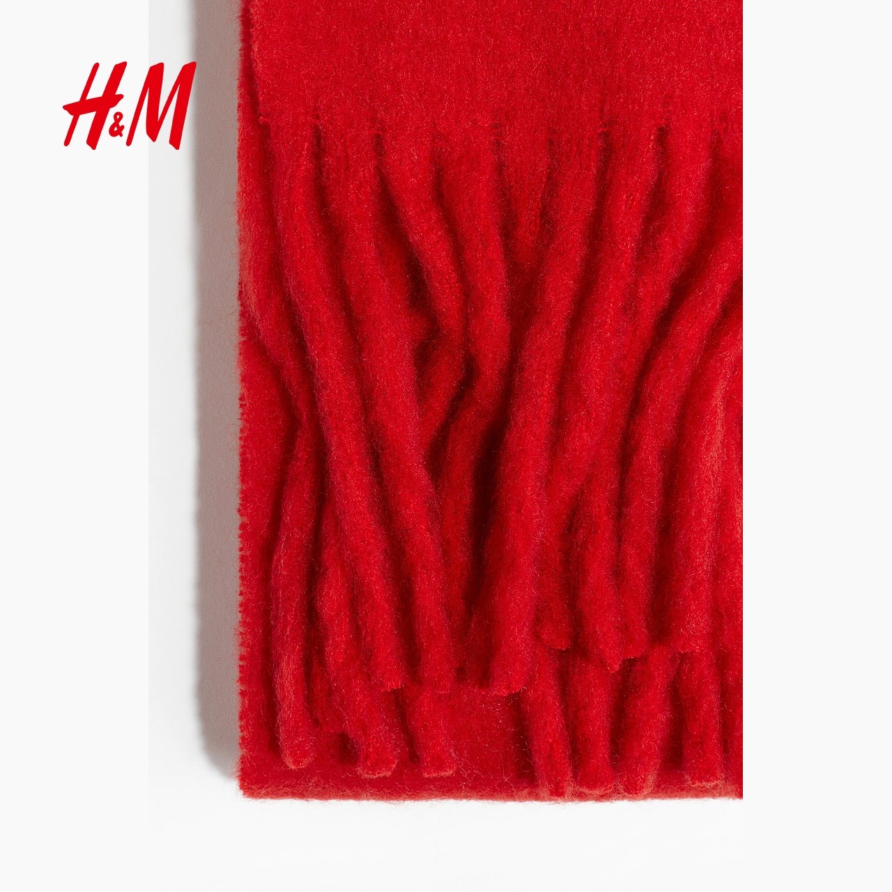 HM服饰配件2025冬季新款女士柔软毛茸梭织流苏压花围巾1251133