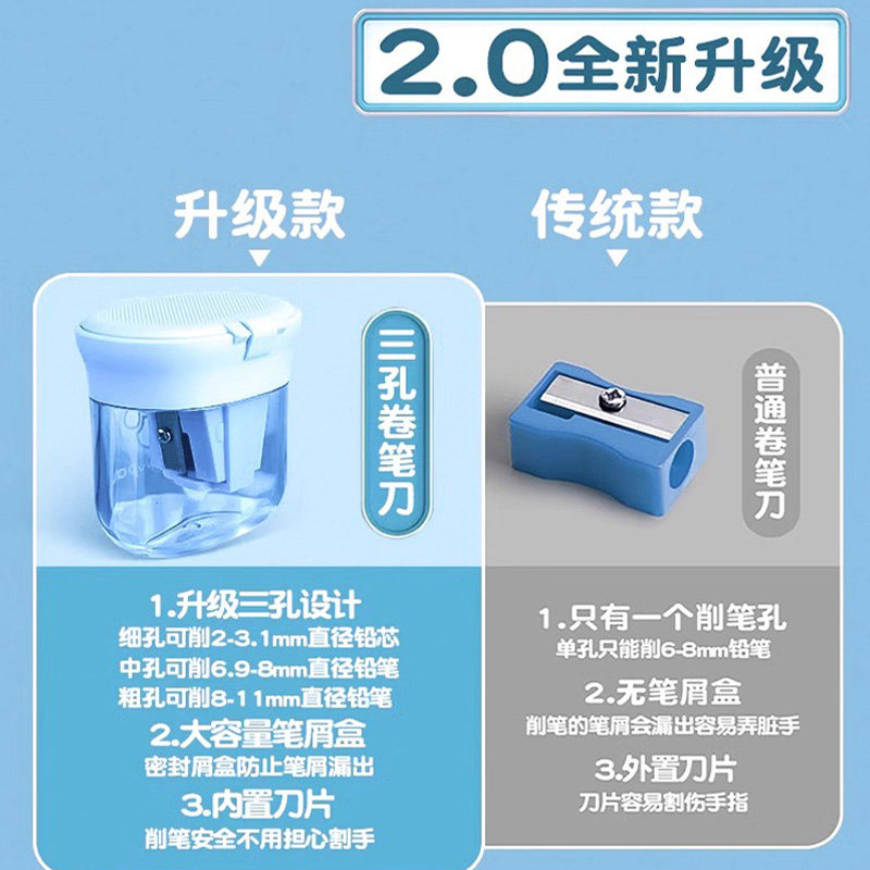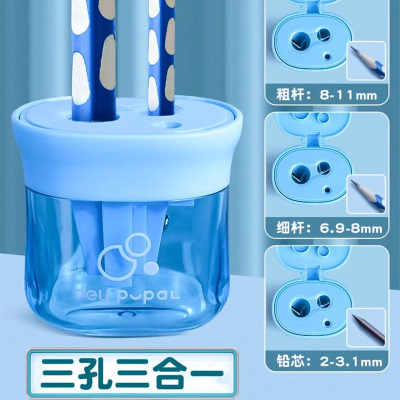 得力定制刻字卷笔刀三孔转笔刀削笔刀小学生儿童幼儿园迷你型专用手动刨笔机粗三角铅笔刀削笔器大口径多功能