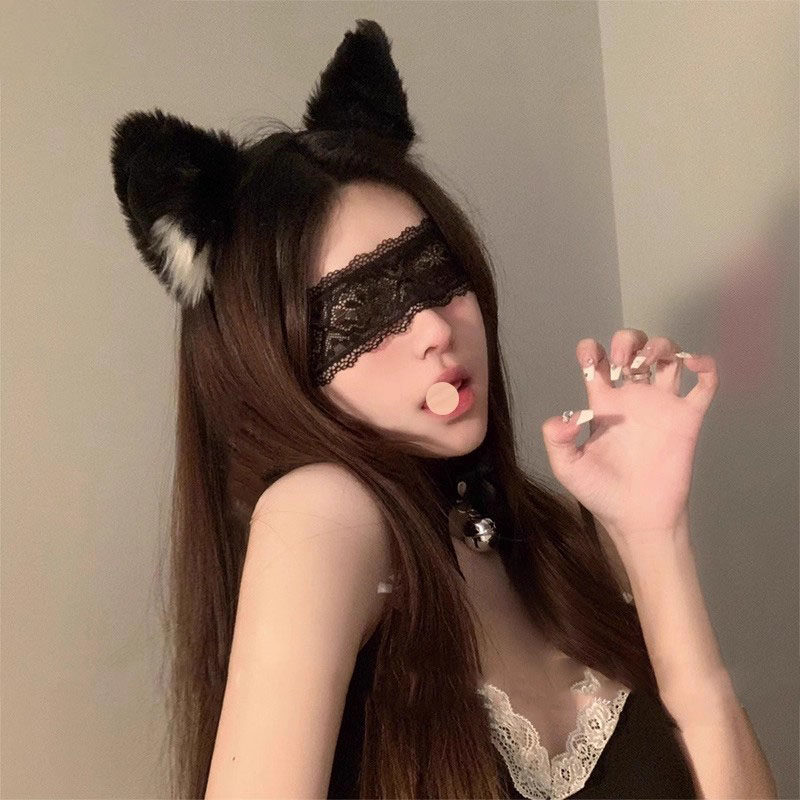 猫耳朵发箍氛围感眼罩面纱禁欲系头饰蕾丝边COS发饰蕾丝带拍照用