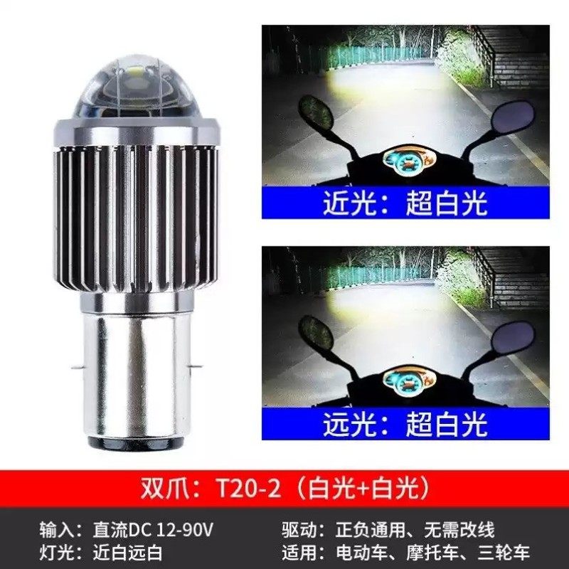 摩托车LED灯电动车灯大灯泡led双爪灯超亮100W瓦强光远近一体12V