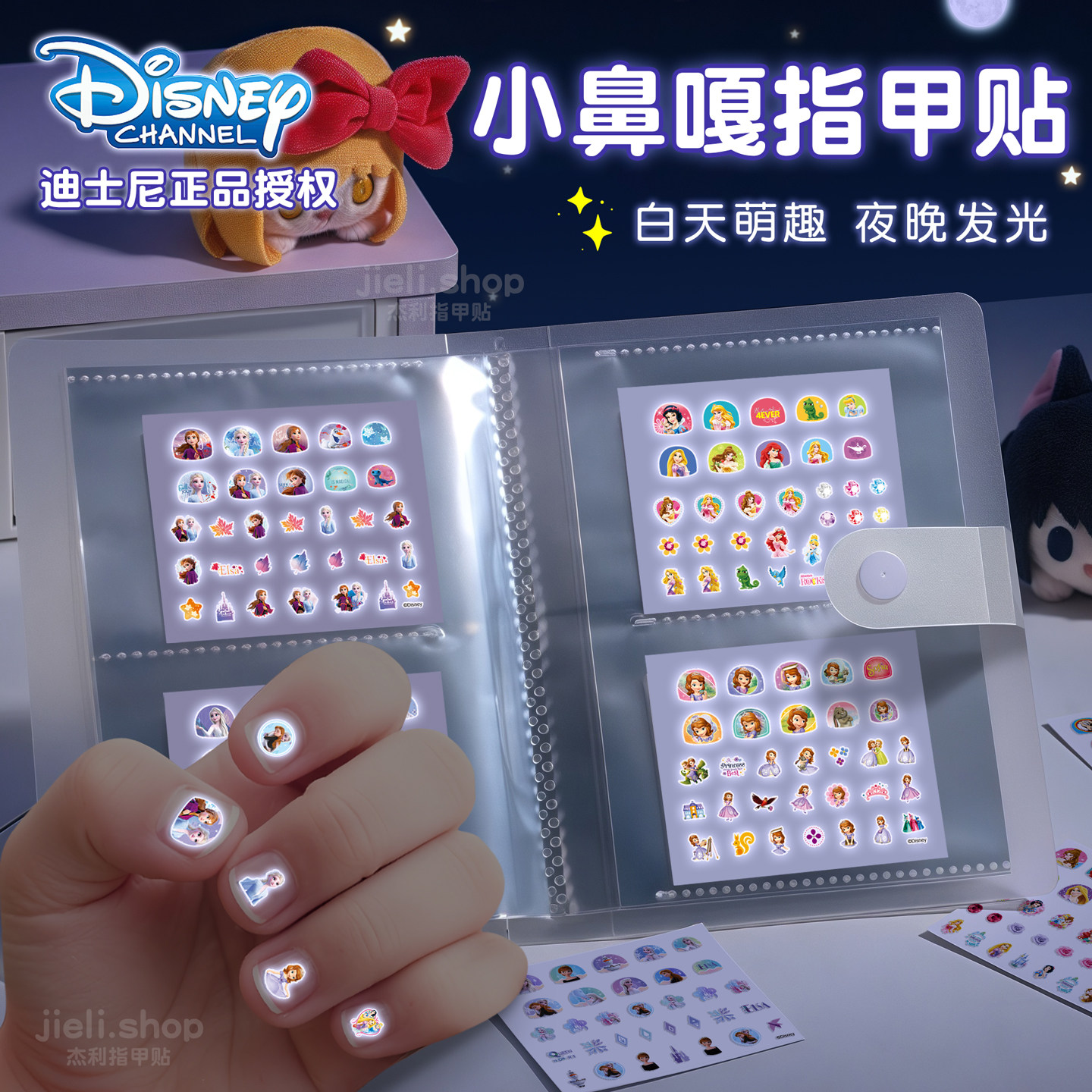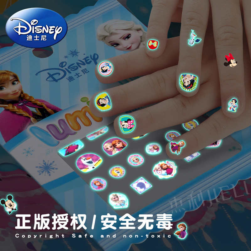 迪士尼夜光指甲贴儿童女孩安全无味新款小鼻嘎贴纸美甲贴片安娜爱莎艾莎公主脚趾甲荧光贴女生甲片幼儿园礼物