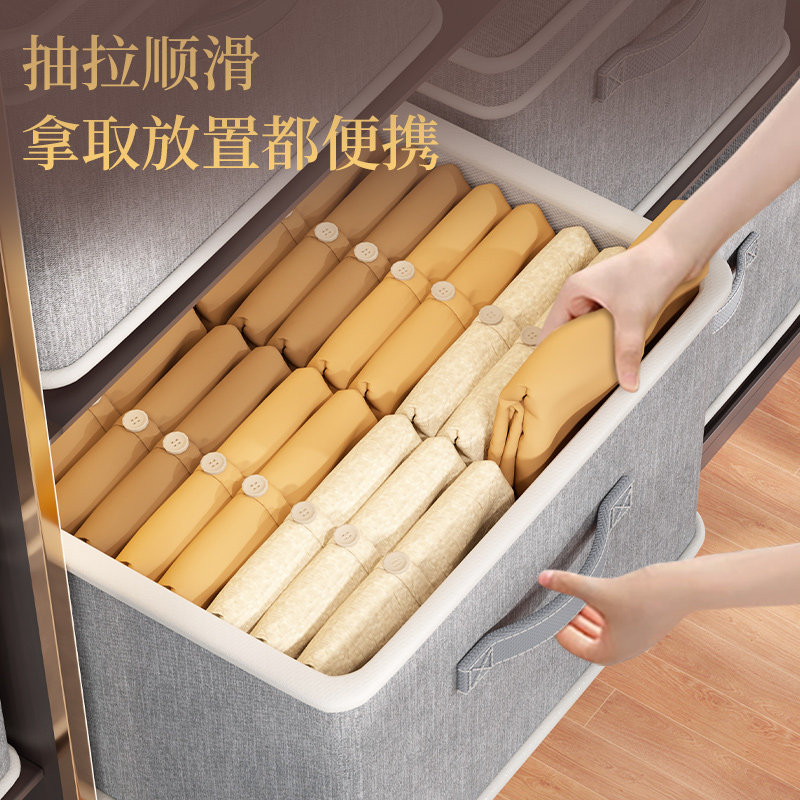 衣柜衣服收纳箱家用衣物裤子阳离折叠整理盒抽屉式布艺钢架储物筐