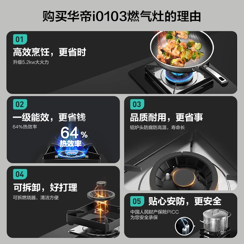 华帝单眼灶5.2KW猛火灶i10103燃气灶台式家用液化气天然气炉具