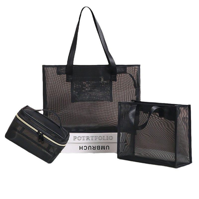 化妆包大容量网纱镂空护肤品水乳套装旅行手提沥水洗澡包收纳包