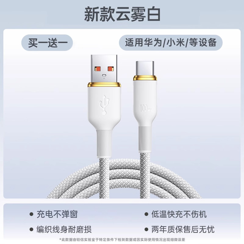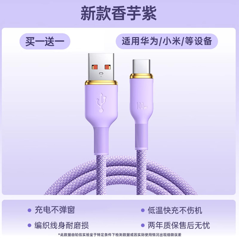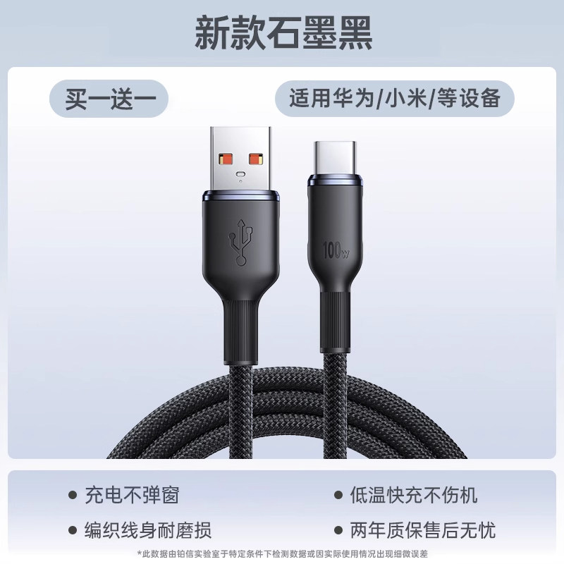【100W超级快充】铂信适用华为荣耀安卓小米充电线type-c数据线快充usb转c口手机USB88w编织tpyec车载6a66w器
