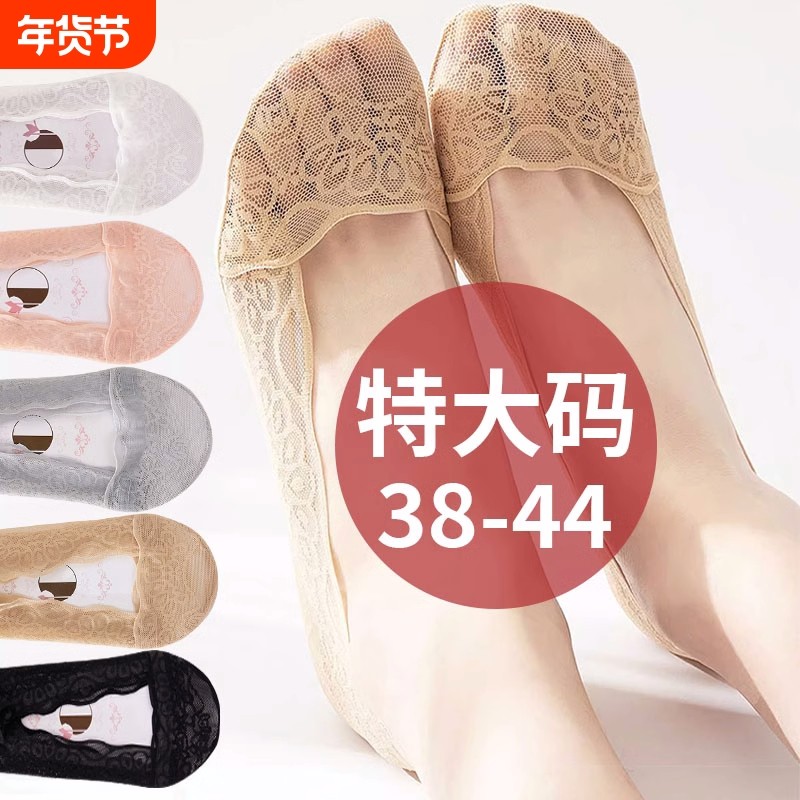 大码蕾丝船袜女41-43码夏季浅口硅胶防脱不掉跟隐形短袜子39薄款