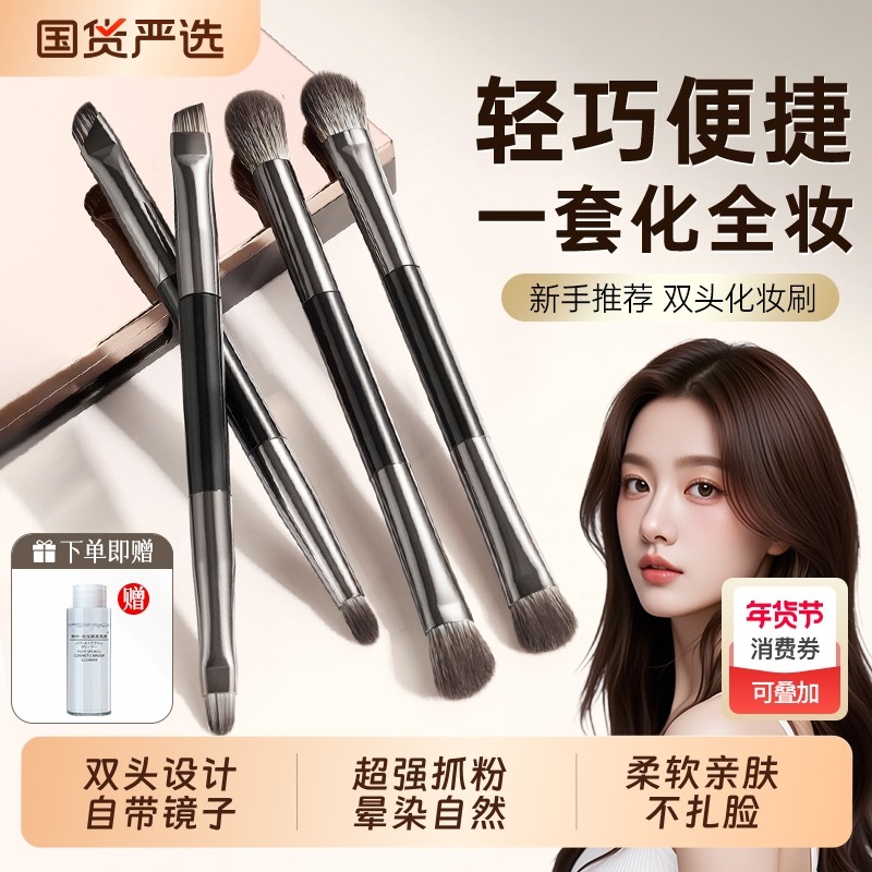 化妆刷盒带镜便携式化妆镜化妆刷套装软毛眼影修容全套双头收纳盒