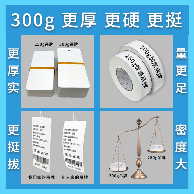 服装吊牌加厚合格证定制空白卷筒吊卡打印纸订做印刷男装价格标签定做现货通用衣服商标挂牌300g克卷装硬卡纸