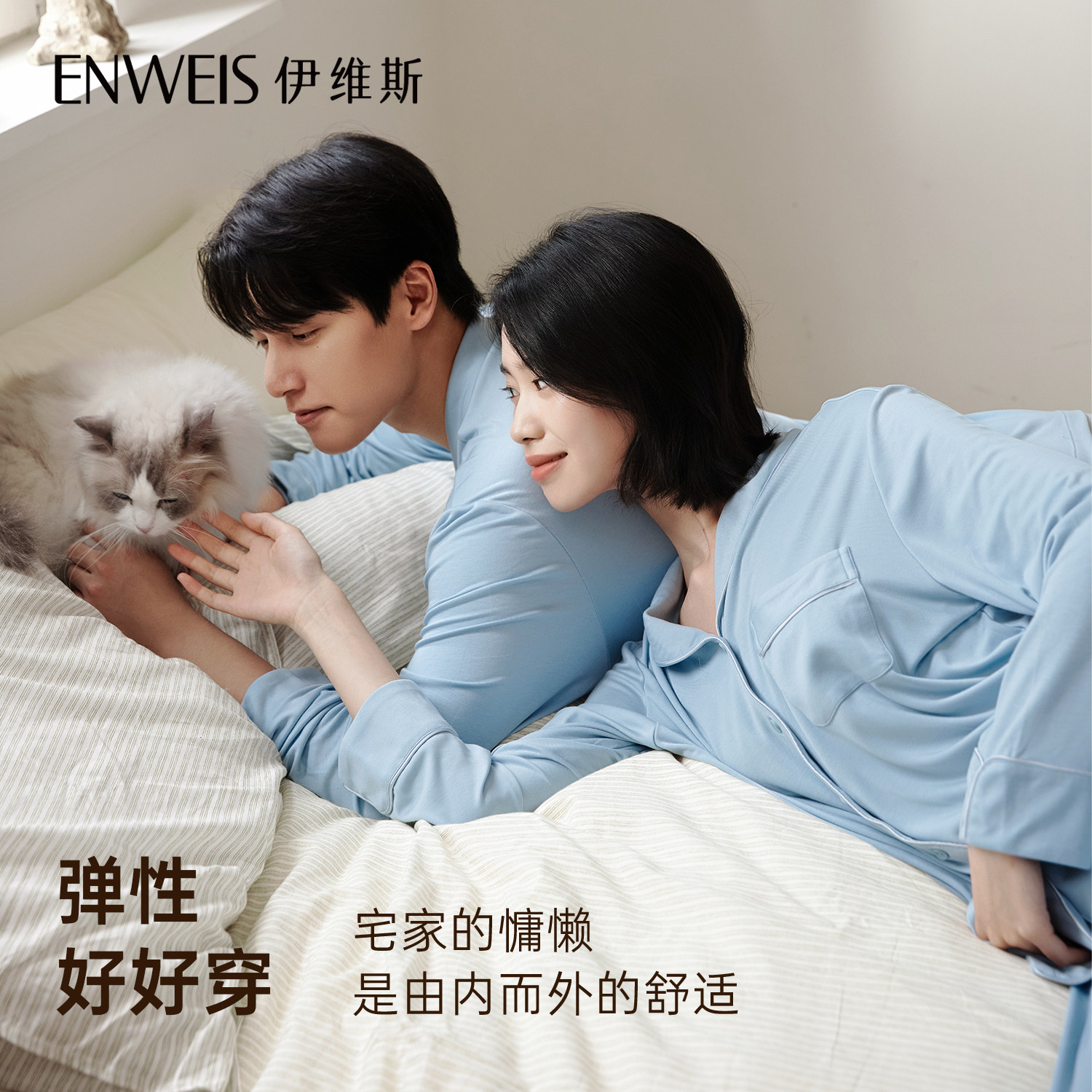 【晚安睡衣】伊维斯防螨睡衣氨基酸女士家居服春秋男式居家服情侣