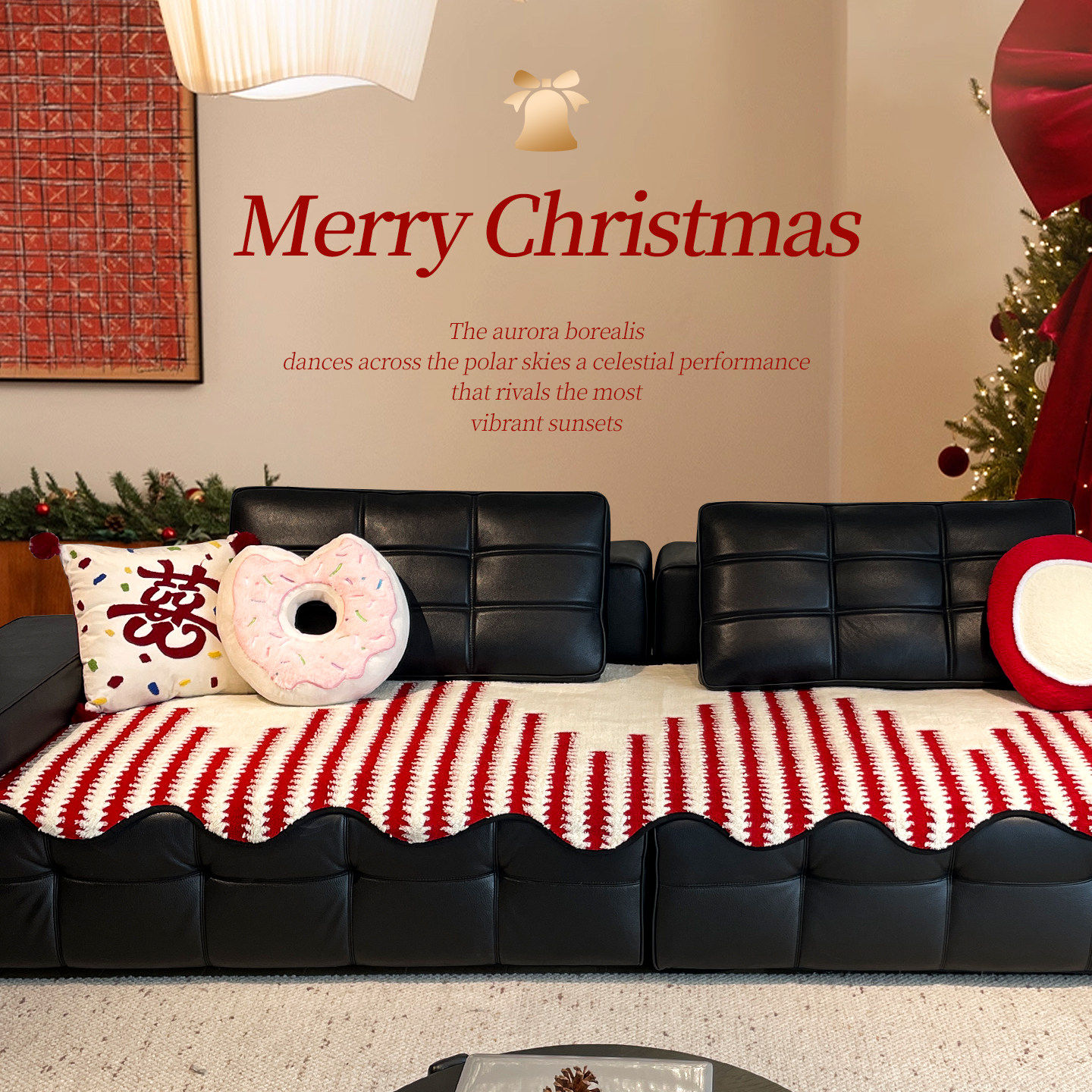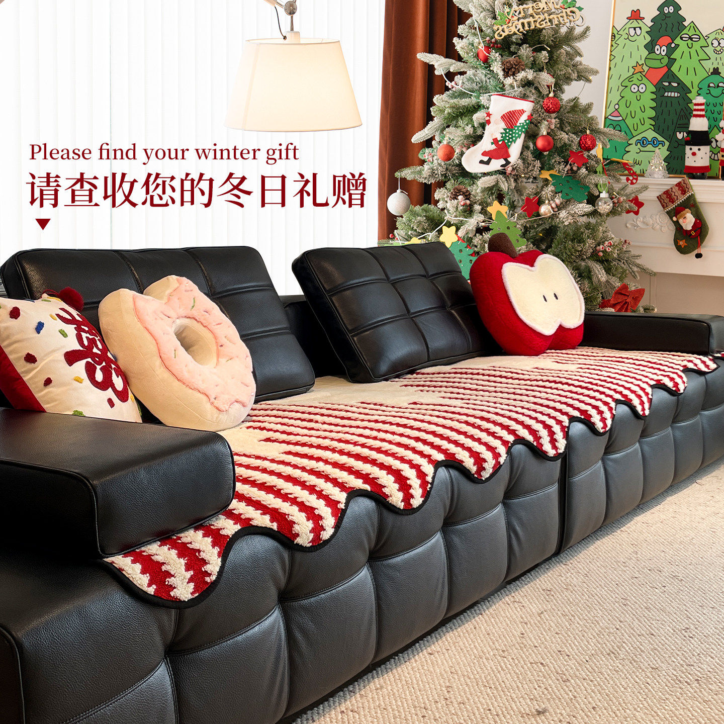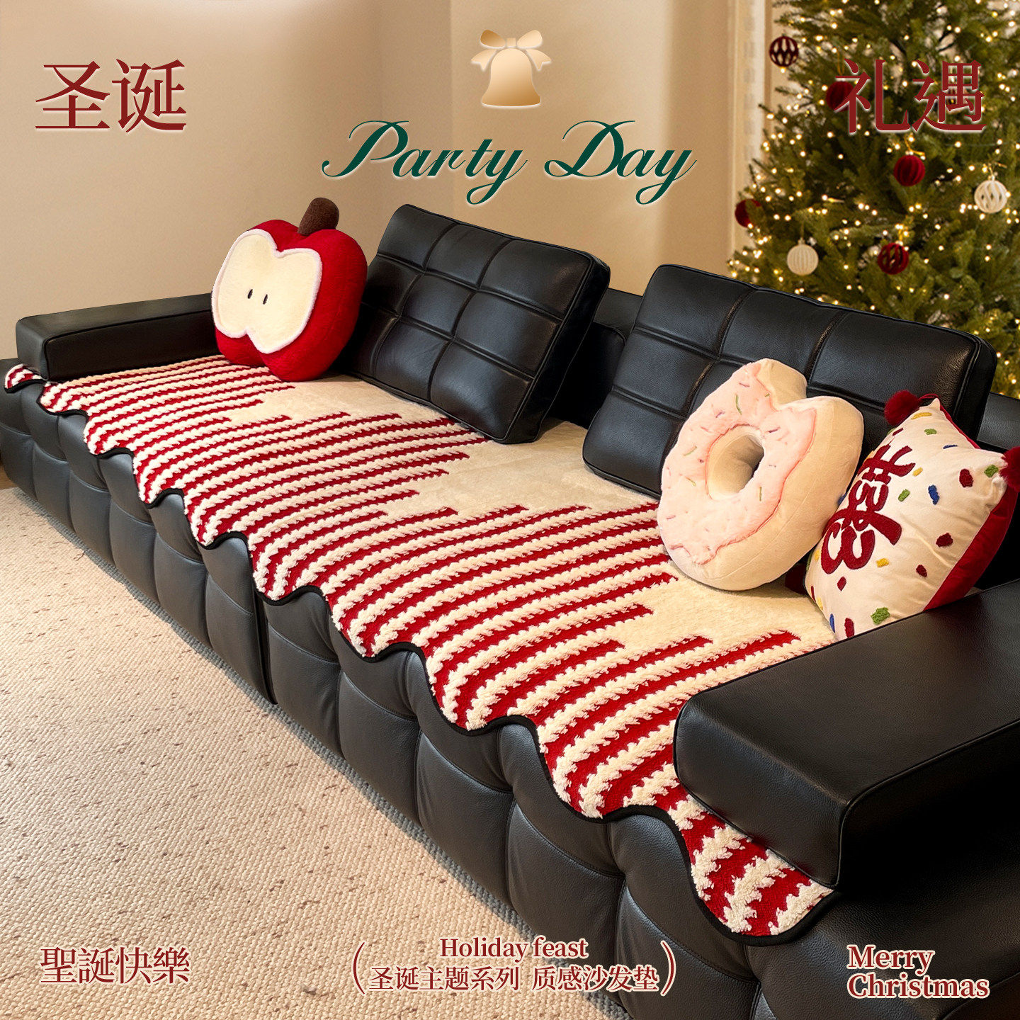圣诞沙发垫冬季毛绒加厚红色喜庆沙发盖布劳伦斯专用沙发坐垫防滑