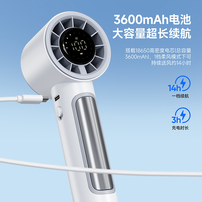 DUXDUCIS手持风扇涡轮小风炮便携式桌面高速强力劲风电扇USB充电随身降温迷你节能静音LED屏数字显示