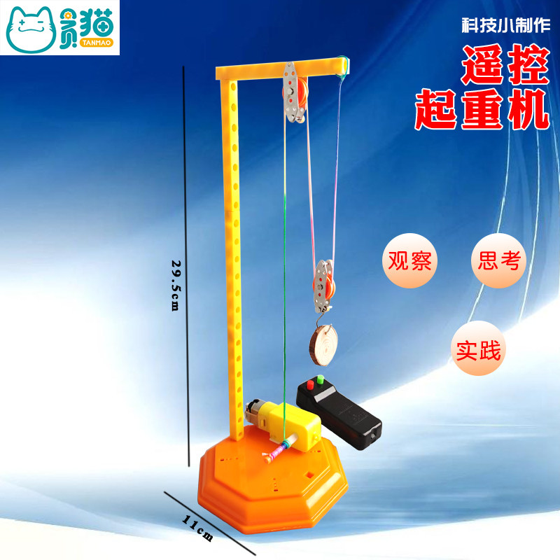 小学生科技小制作手工diy物理实验自制定滑轮动滑轮遥控起重机
