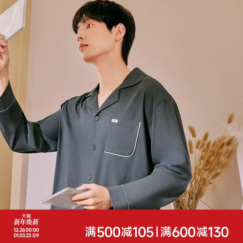 森马睡衣男款春夏棉质长袖长裤男生2025新款宽松可外穿男士家居服