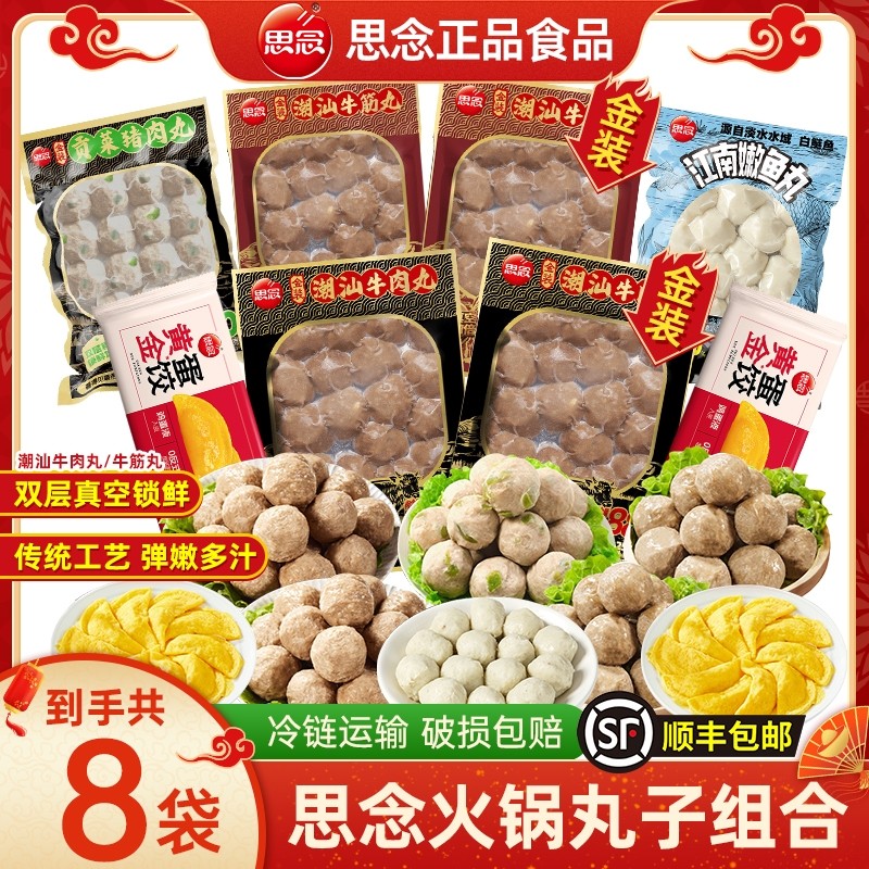 【到手8袋】思念火锅丸子组合牛肉丸鱼丸蛋饺麻辣烫食材家用批发