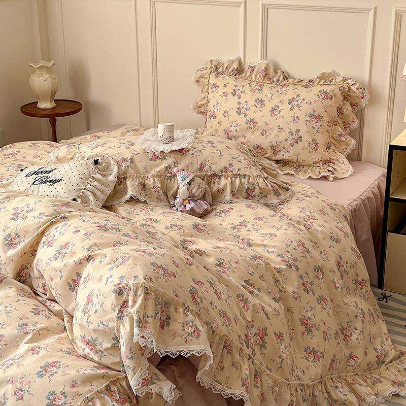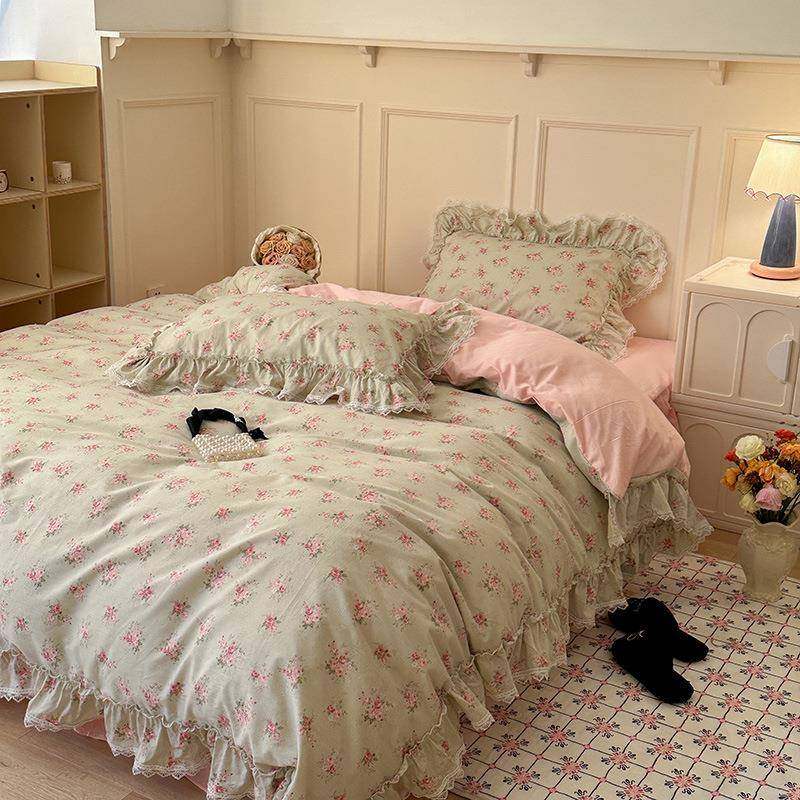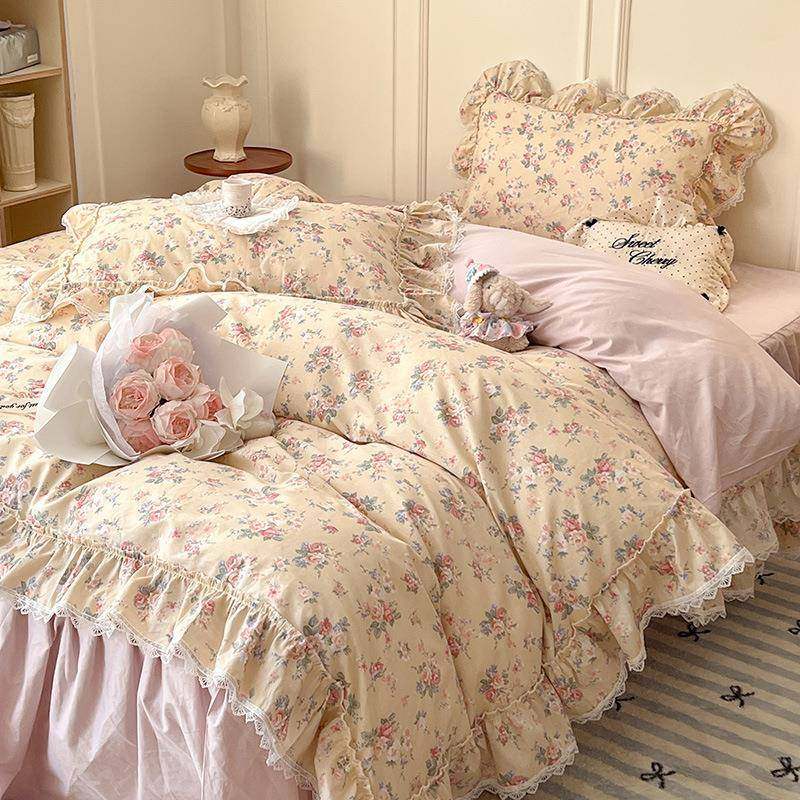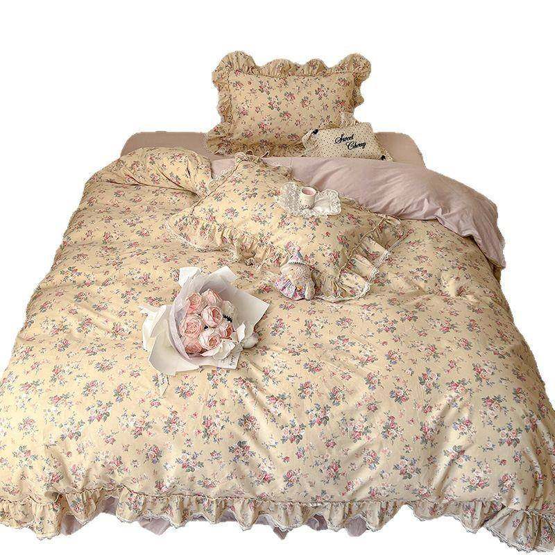 法式公主风床裙全棉床上四件套小碎花荷叶边1.8m纯棉被套床单床品