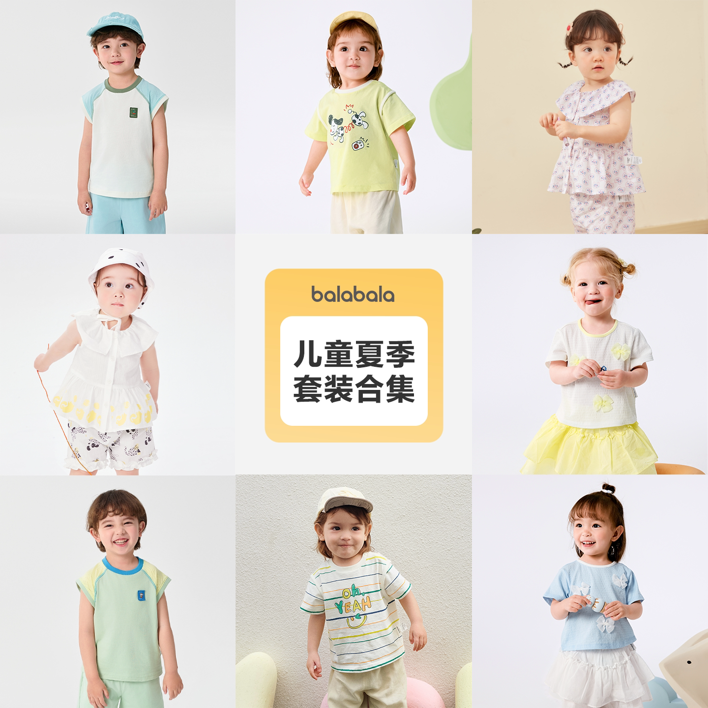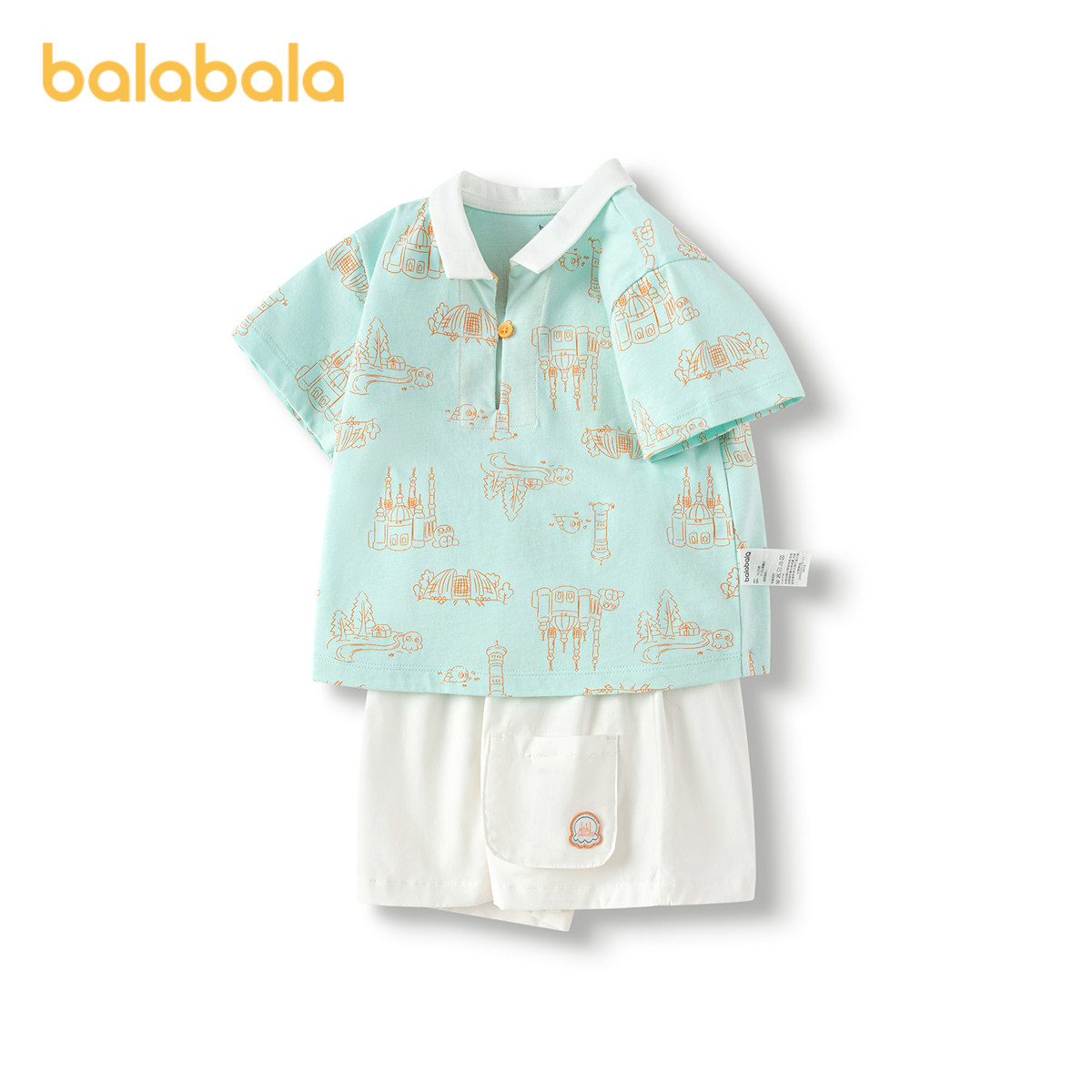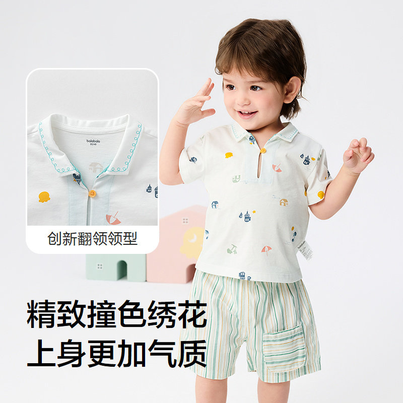 巴拉巴拉童装儿童短袖套装男童夏季两件套女童透气短袖短裤宝宝潮