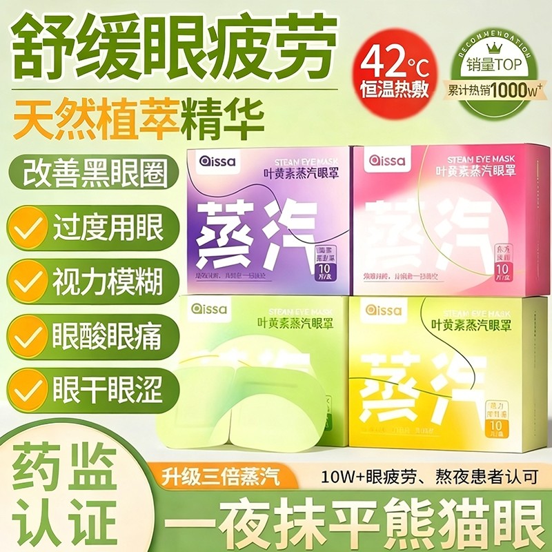 叶黄素蒸汽眼罩缓解眼睛疲劳热敷睡眠遮光发热护眼贴加热蒸气眼部