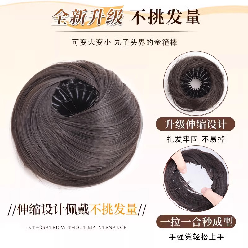 丸子头发圈假发女秋冬真发抓夹花苞头盘发神器假发包蓬松鸟巢发型