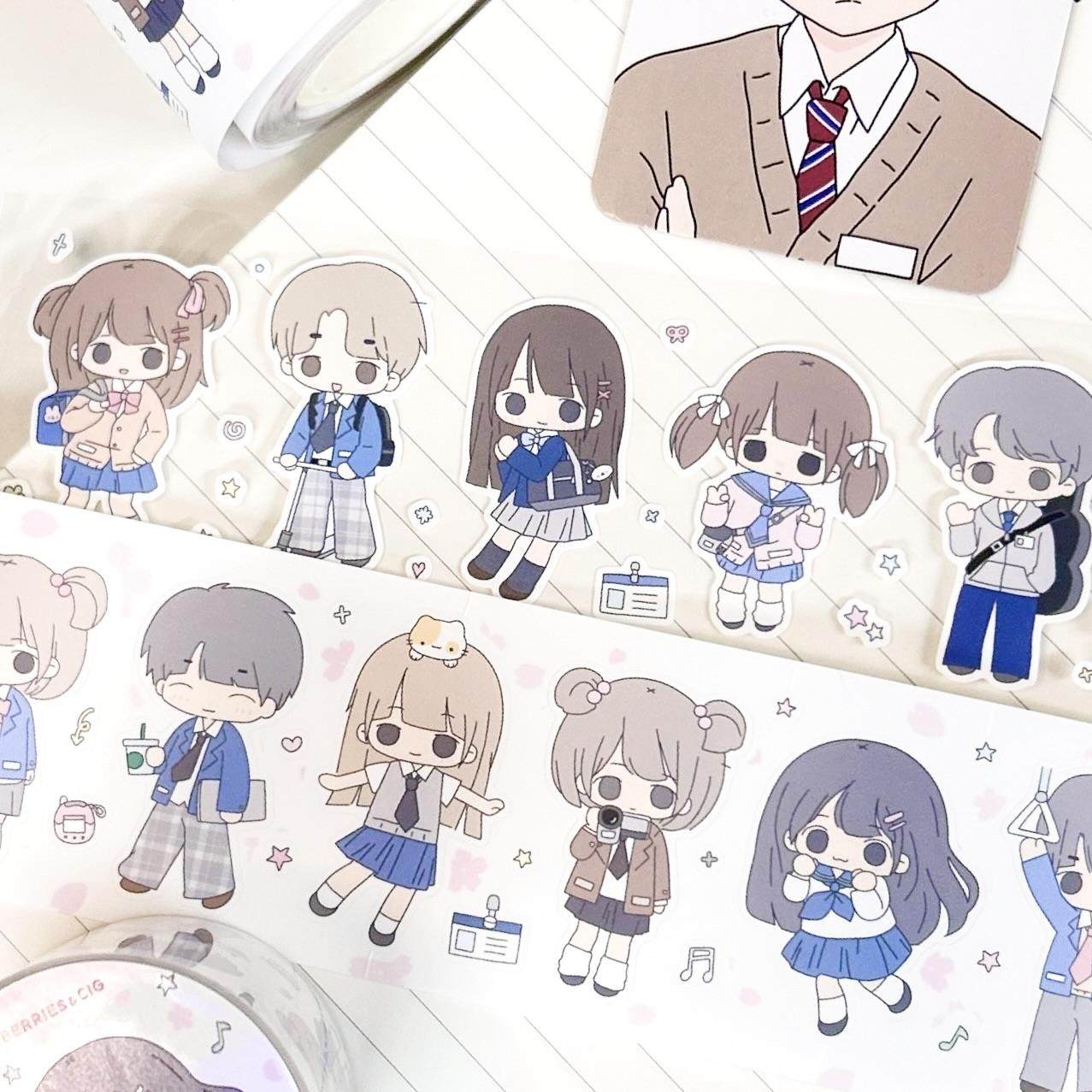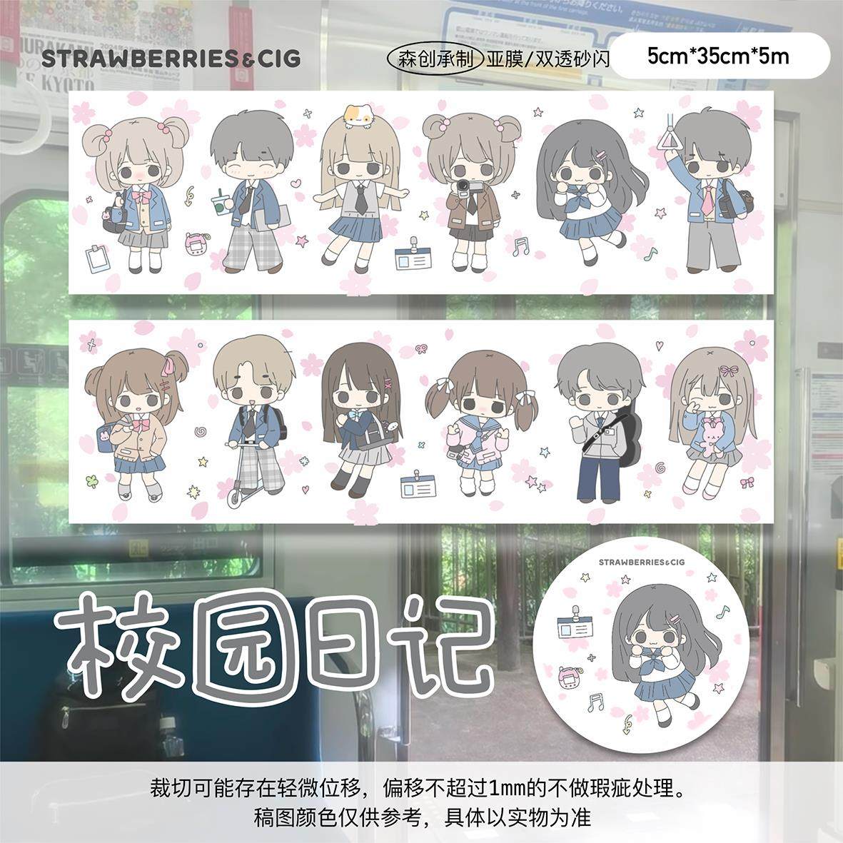草莓烟·校园日记 原创贴纸卷 人物少女制服切模胶带手帐