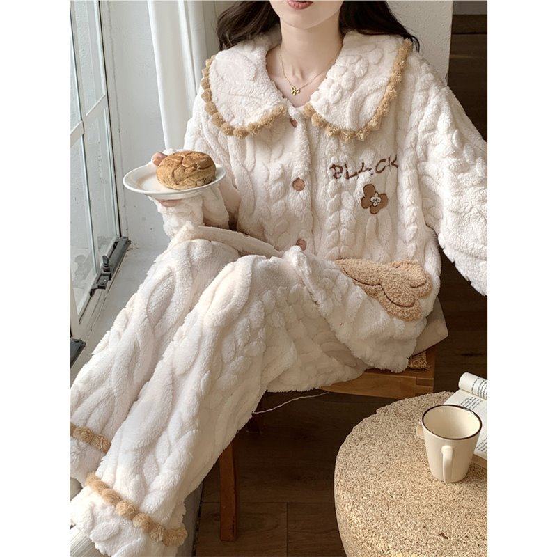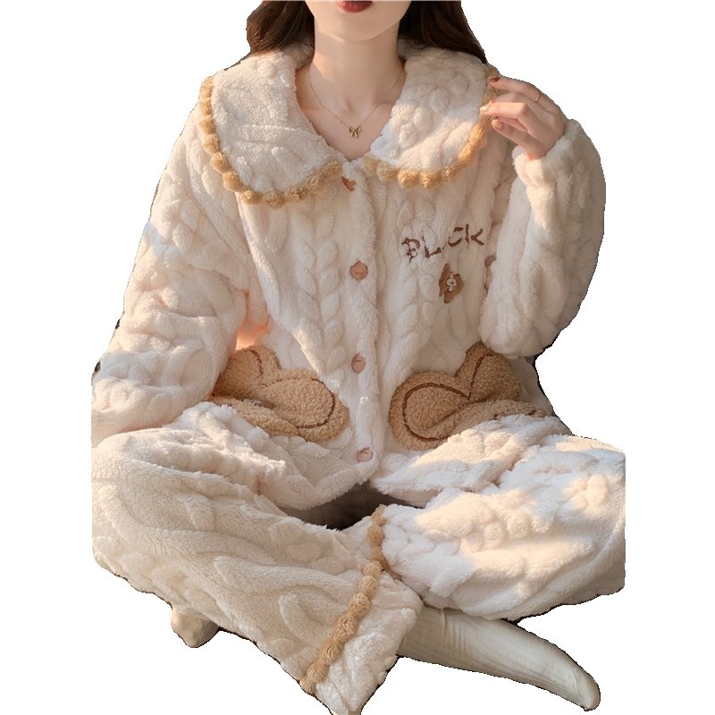 轻奢珊瑚绒睡衣女秋冬季加绒加厚2025新款女士冬天保暖家居服外出