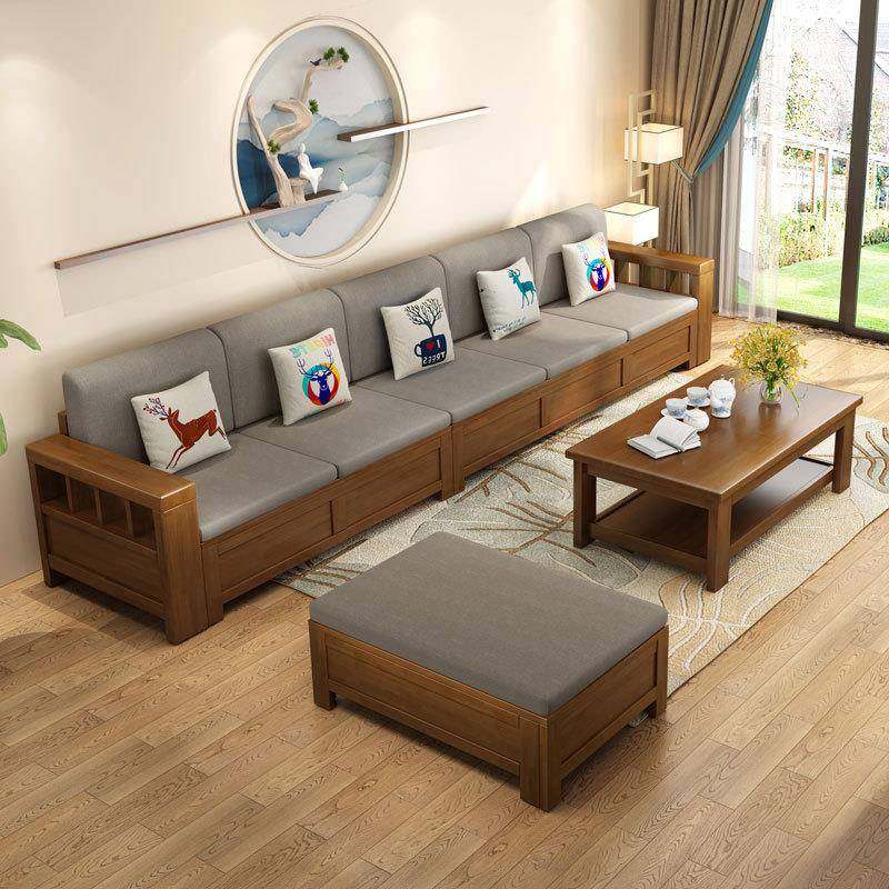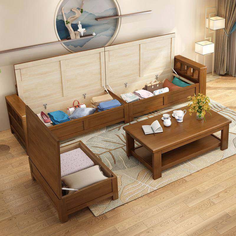 新中式全实木沙发组合现代简约储物贵妃橡木质小户型客厅轻奢家具