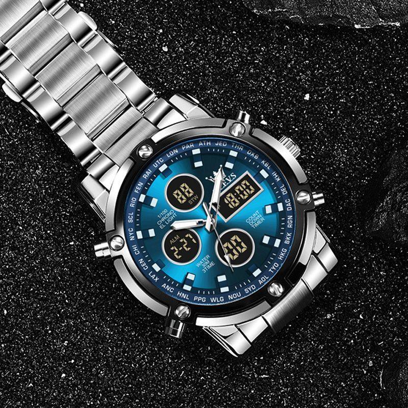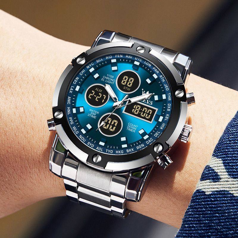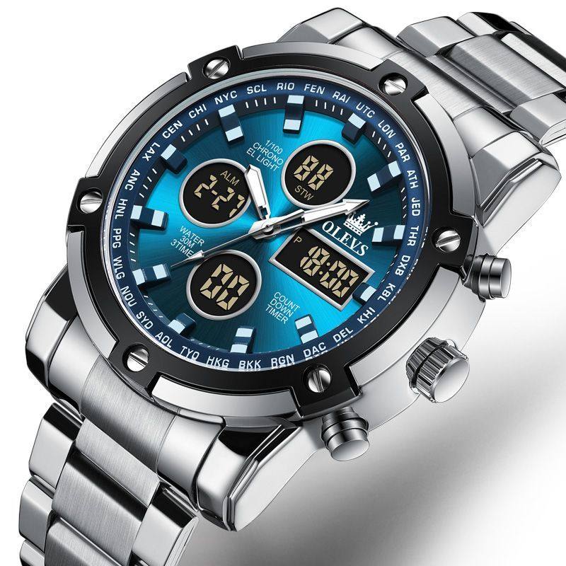 瑞士新款电子双显多功能大气运动学生高中计时男士手表大表盘夜光