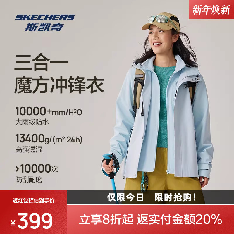 斯凯奇魔方冲锋衣2025秋冬男女款三合一专业防水透气耐磨运动外套