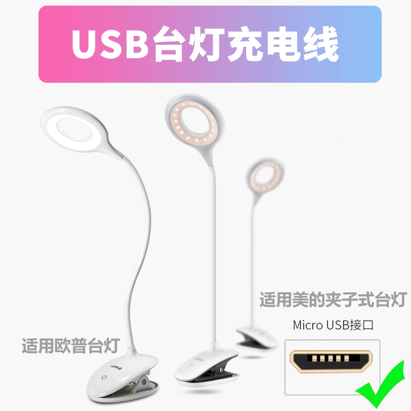 适用美的台灯充电线扁头安卓typec数据线欧普夹子led床头灯usb电源线充电器卧室灯夹式台灯风扇学习护眼阅读