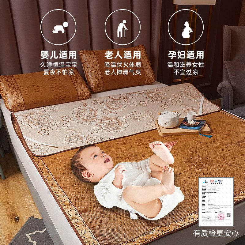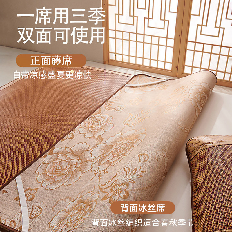 夏季凉席冰丝藤席家用双人床可折叠空调草席子老式冬夏两用天然软